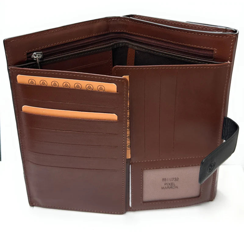 Billetero de Piel Grande (19 X 11cm) monedero de clic Lugupell Pixel Marron