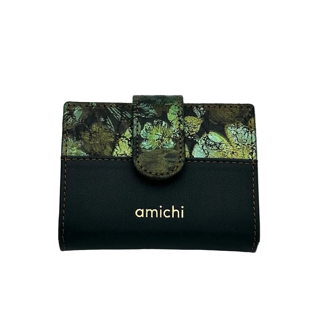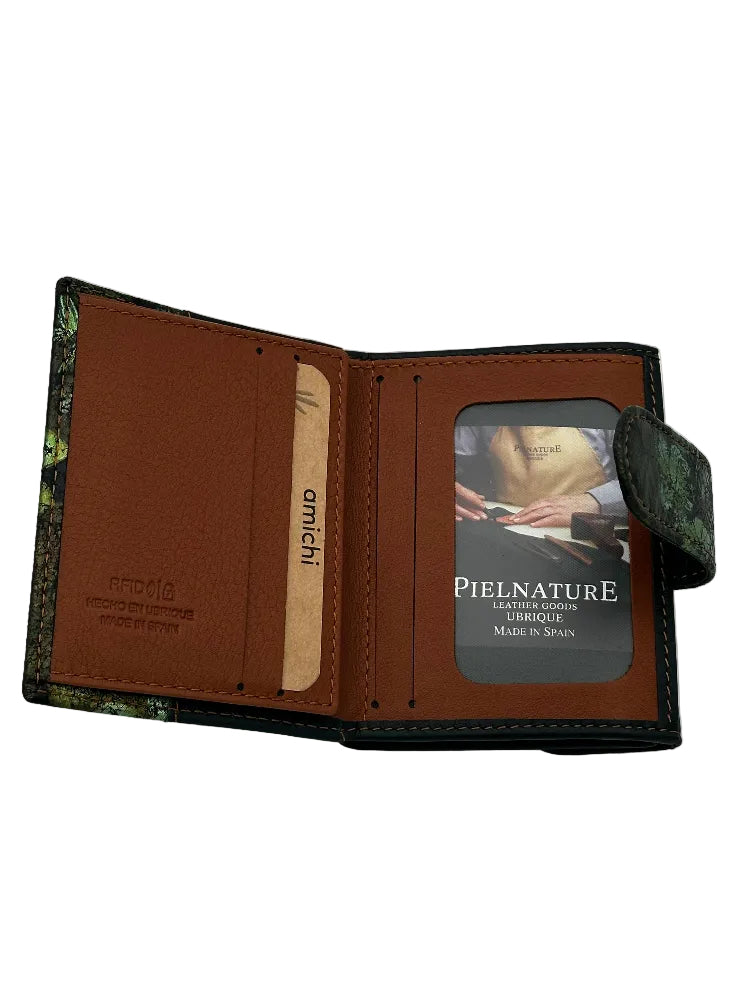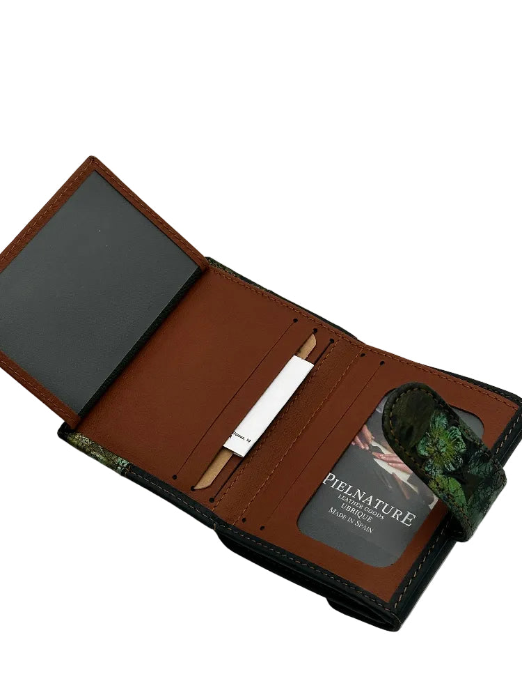 Billetero de Piel Vacuno Monedero Clic Amichi Hojas Verde 11x8,5cm