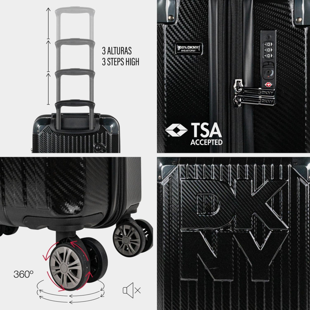 La maleta de cabina DKNY Stack Logo no es solo equipaje: es actitud. Diseñada para viajeros urbanos, exigentes y con estilo, combina formato cabina, resistencia premium y un diseño con logo DKNY en relieve que no pasa desapercibido.