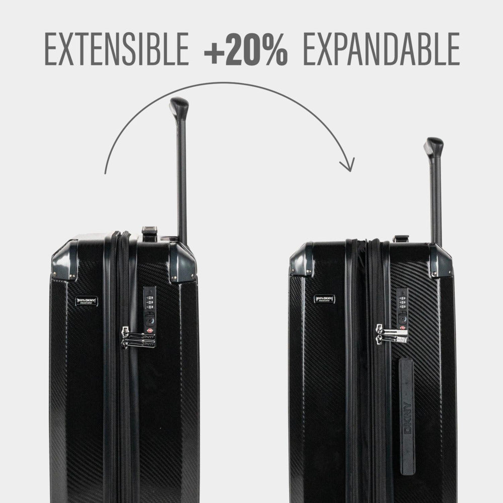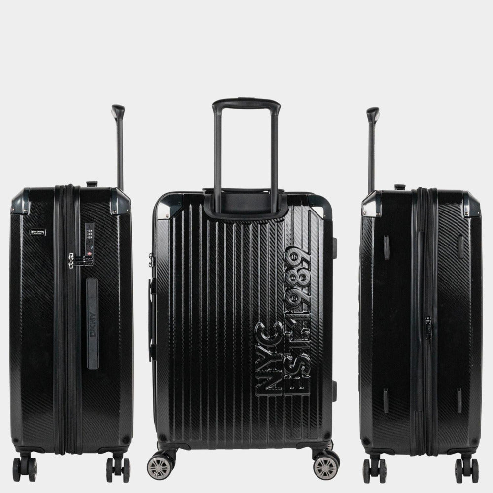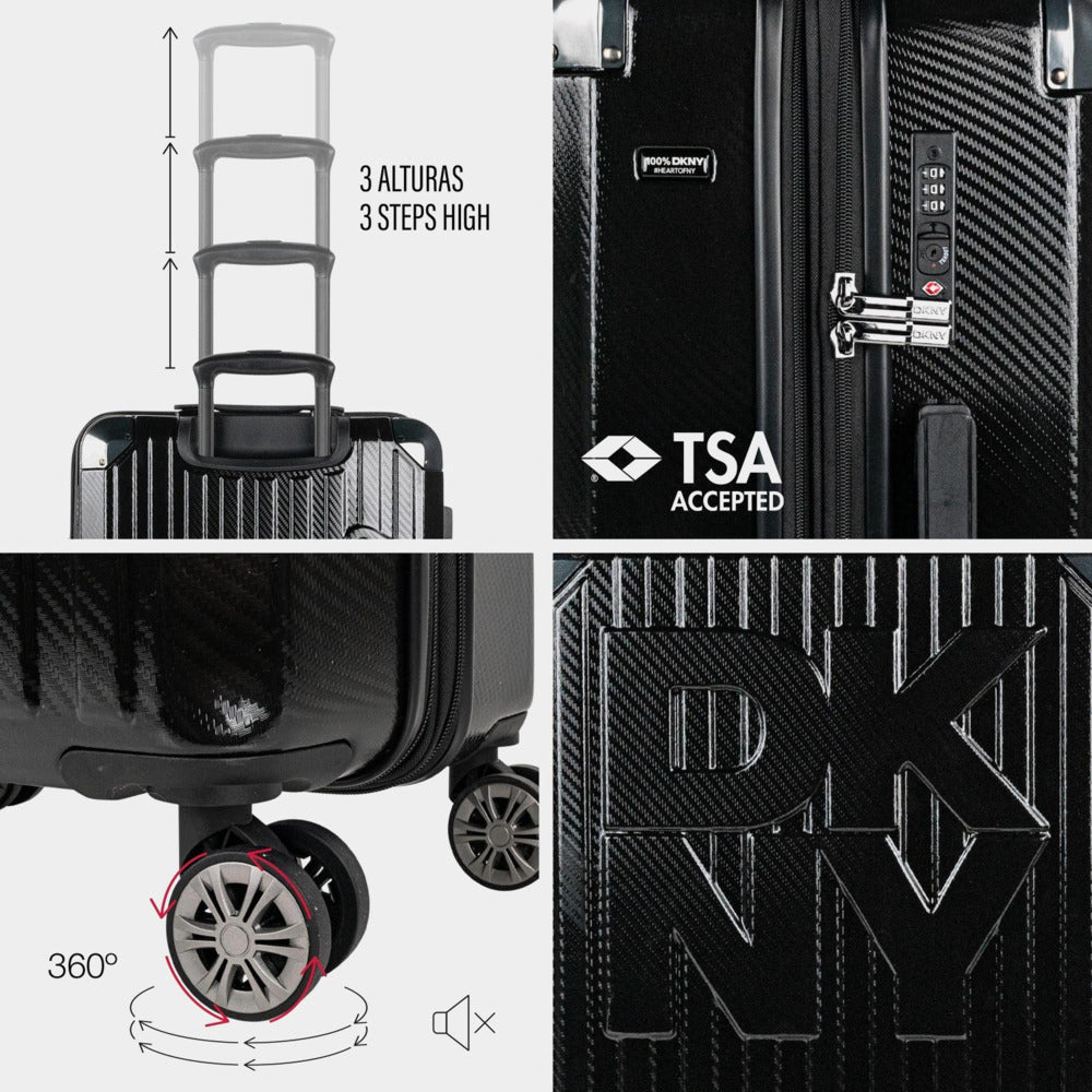 La maleta mediana DKNY Stack Logo está diseñada para quienes viajan con todo… menos dudas. Es el equilibrio perfecto entre capacidad, resistencia y diseño icónico, pensada para viajes de varios días, escapadas largas o vacaciones completas.