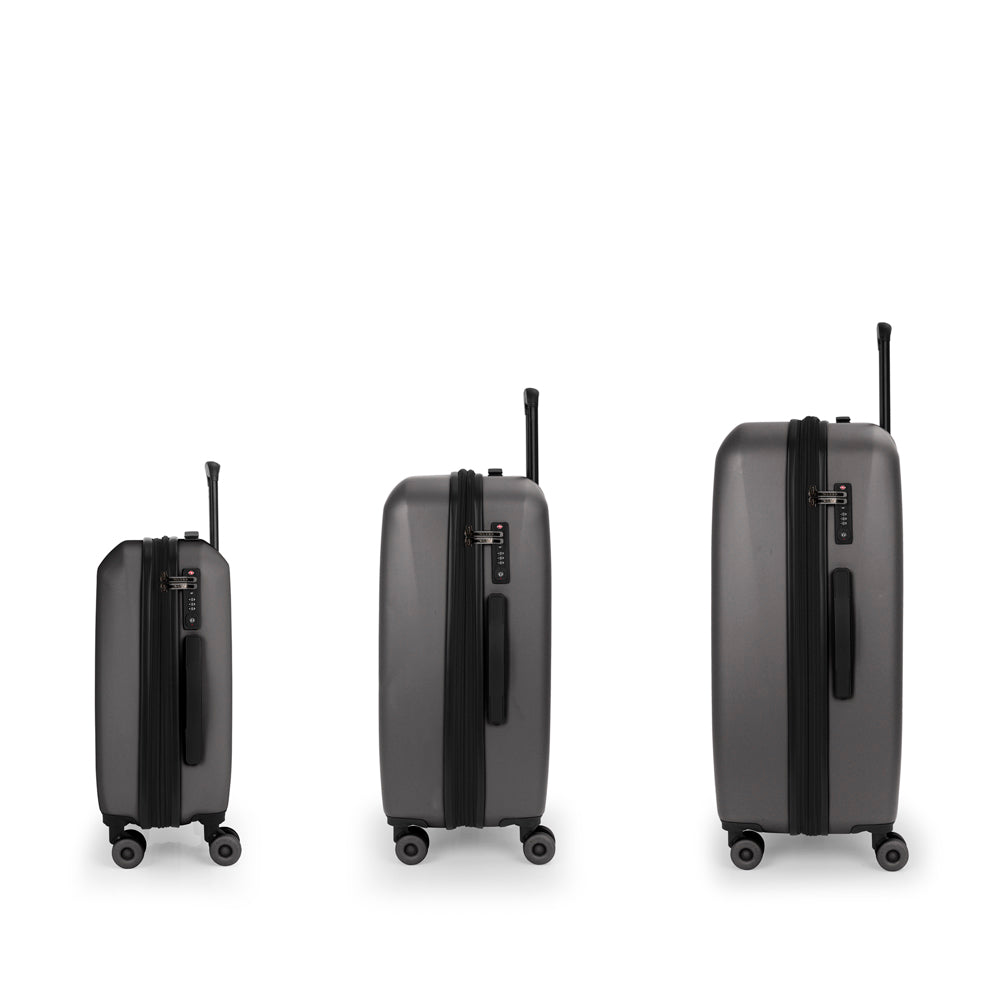 Este set de 3 maletas Gabol Pacific es eso: una solución completa. Desde una escapada de fin de semana hasta un viaje largo sin límites. Cabina, mediana y grande. Todo cubierto.