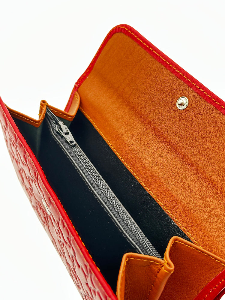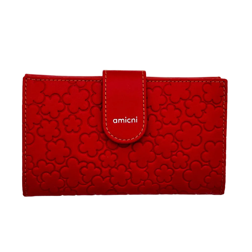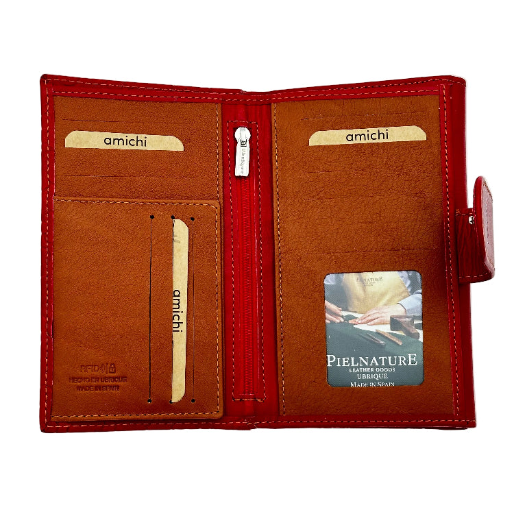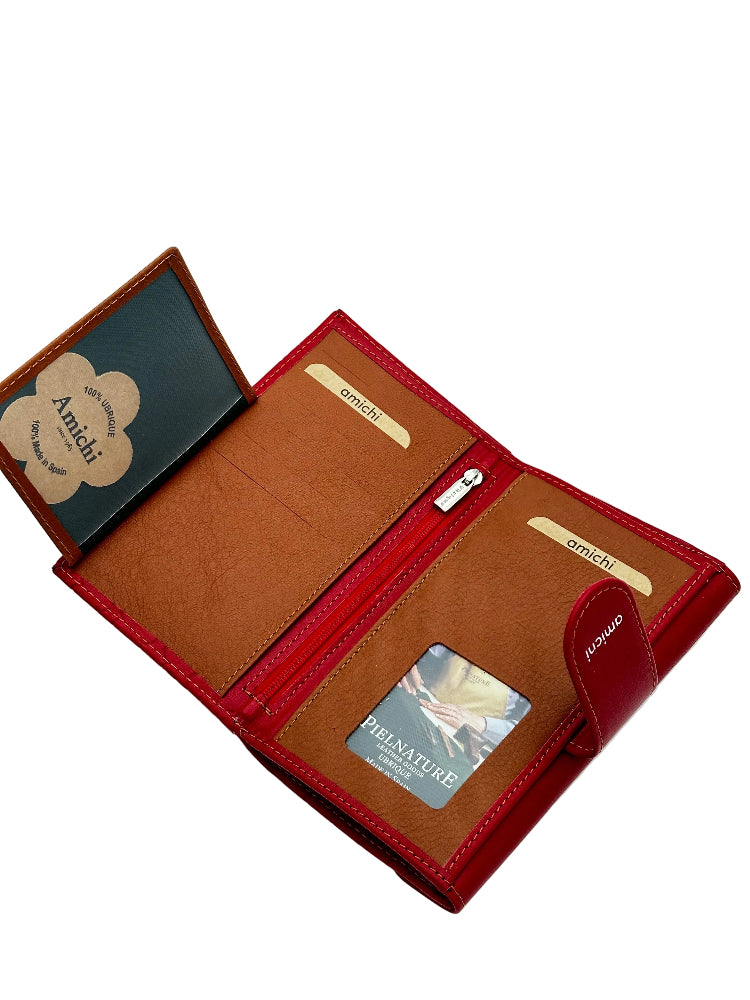 Billetero de Piel Vacuno Monedero clic Amichi Rojo 16,5x11cm