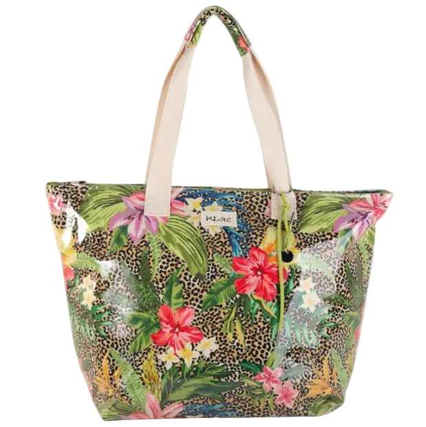 Las asas en tono neutro equilibran la explosión tropical y permiten llevarlo cómodamente al hombro. La cremallera superior aporta seguridad y practicidad, porque estilo y funcionalidad no están reñidos.