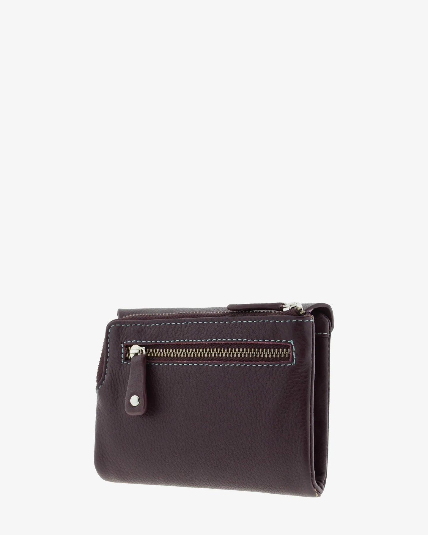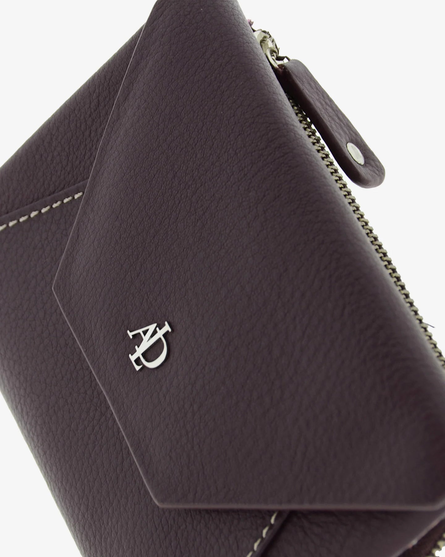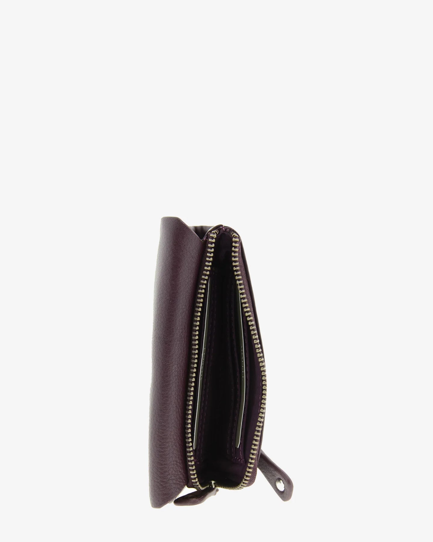 Billetero de Piel solapa (14 X 9cm) monedero de cremallera Adapell Lettera Berenjena