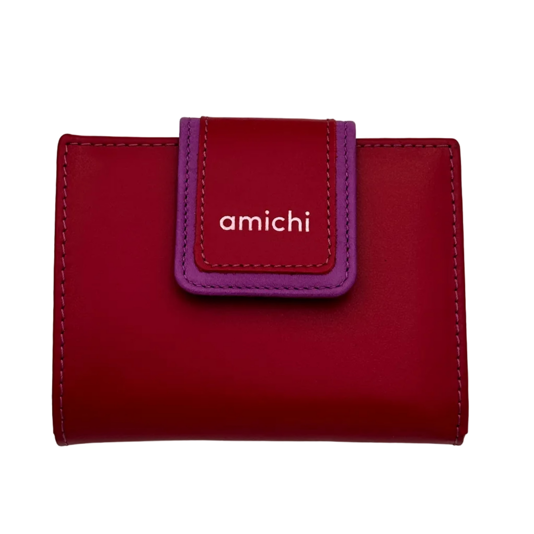 Billetero de Piel Vacuno Monedero clic Amichi Classic Rojo 12x9,5cm