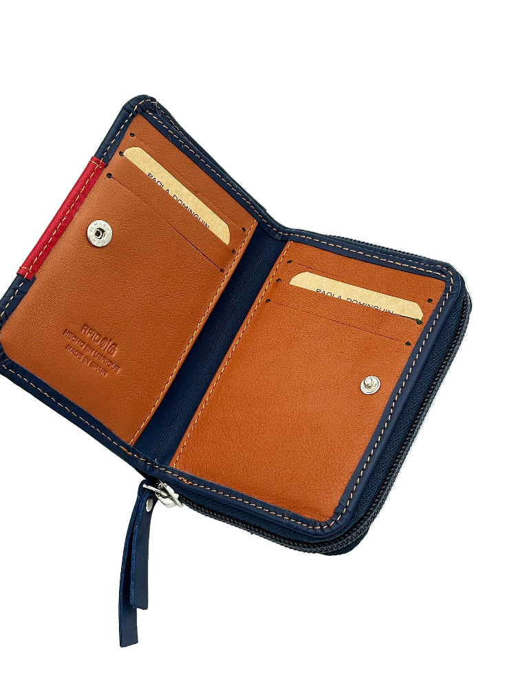 Billetero de Piel Vacuno Monedero cremallera Paola Dominguin Azul 11,5x9cm
