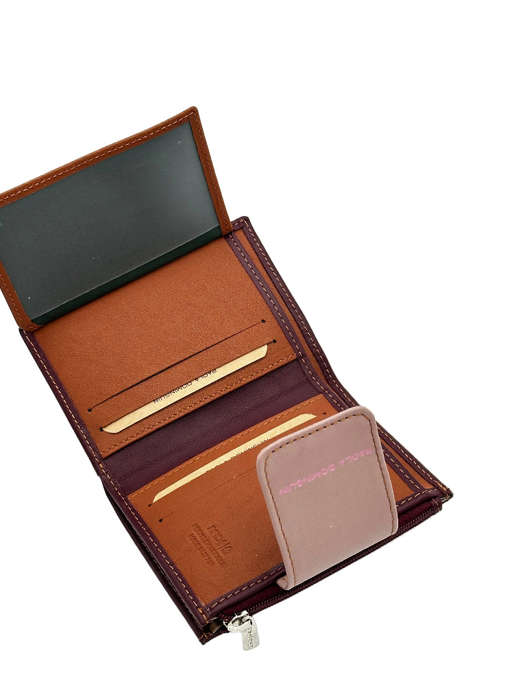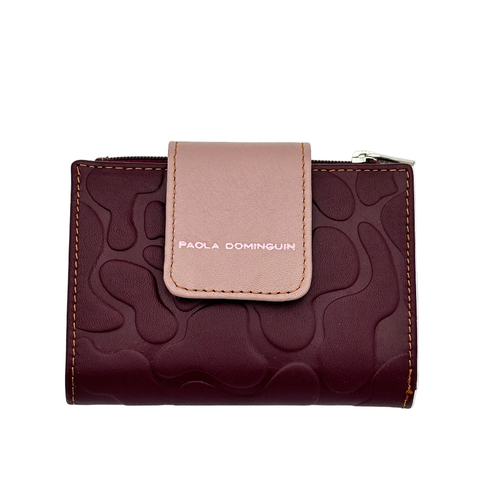 Billetero de Piel Vacuno Monedero cremallera Paola Dominguin Burdeos 12,5x9,5cm