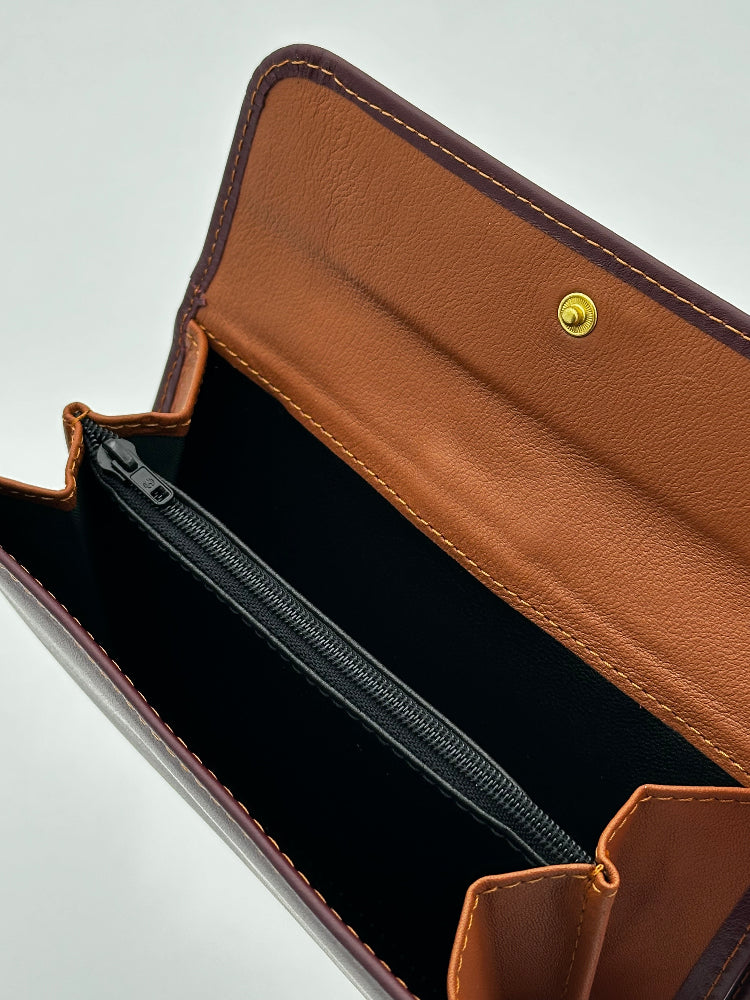 🍃 Billetero de Piel Vacuno con Monedero Clic Amichi Hojas Burdeos